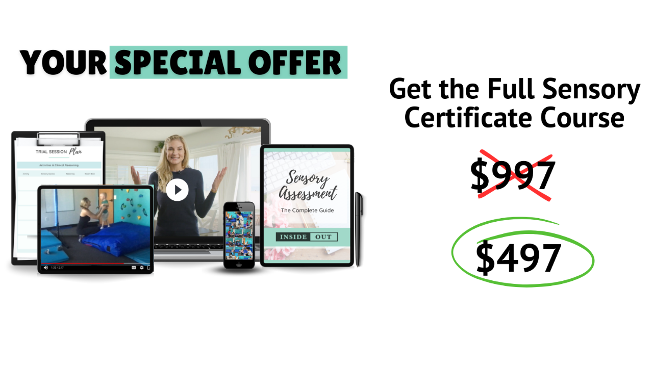 ✓ My easy-to-use sensory assessment that you’ll love using this with every kid you ever work with (Value $397)