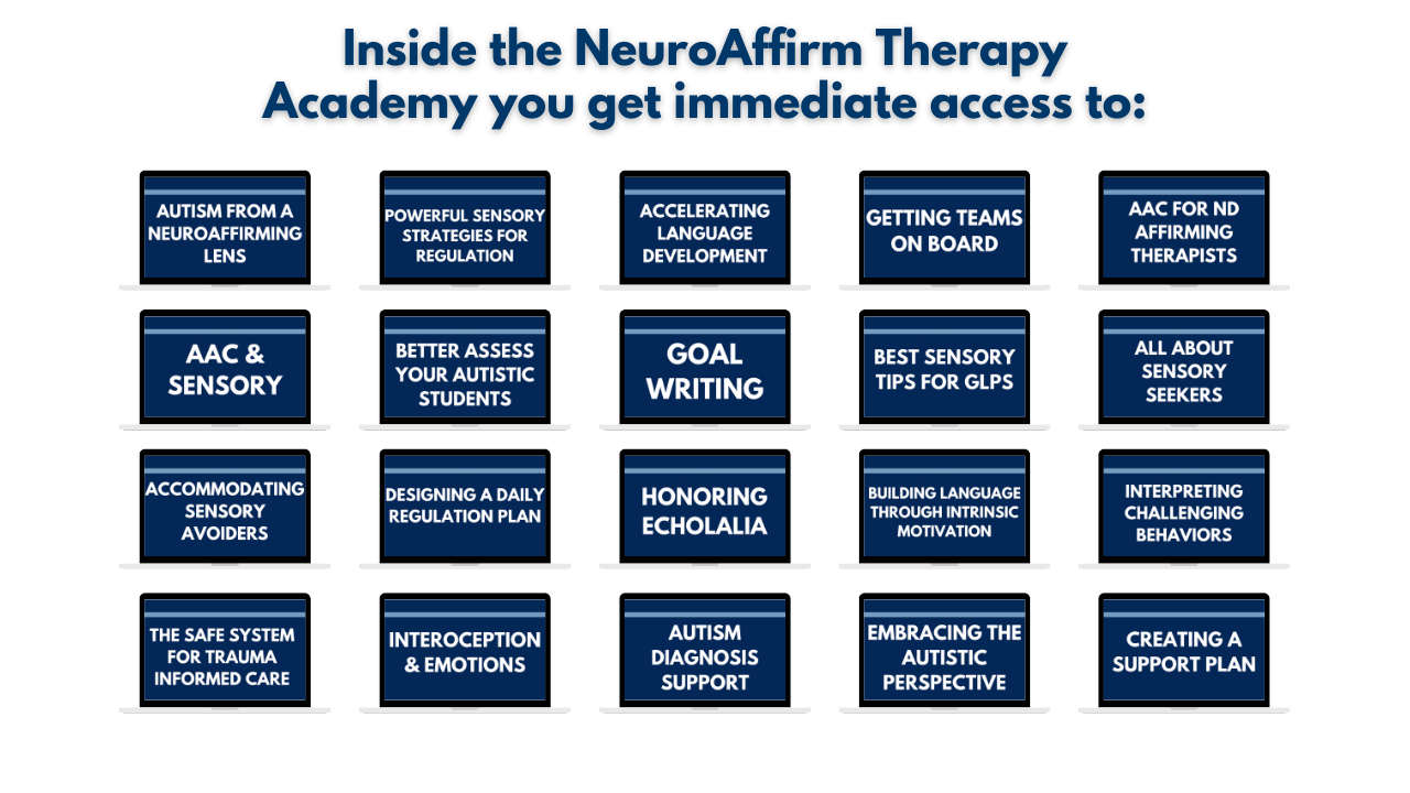 Become the therapist everyone looks to for ND-affirming care. With these trainings, you’ll confidently back up your practice, show efficacy, and deliver therapy grounded in research and respect for neurodivergent individuals.