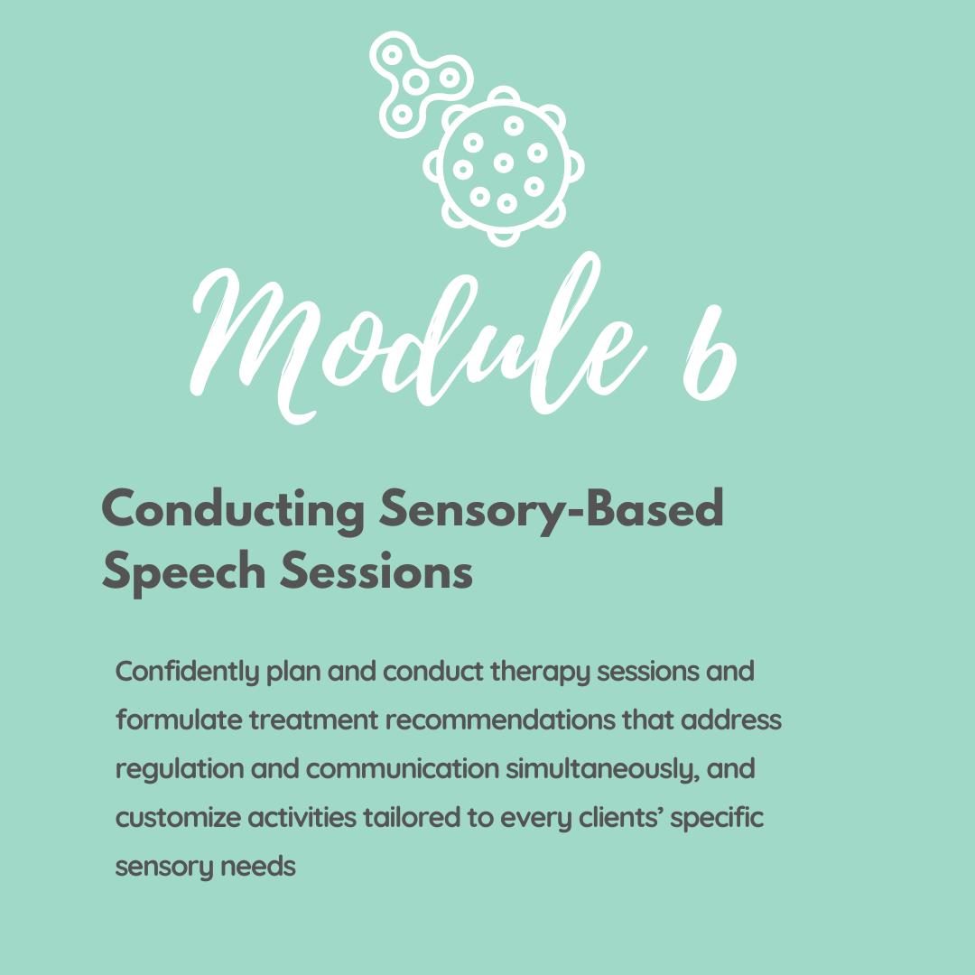 When you enroll today, you’ll get LIFETIME ACCESS to the complete 6-module course that’s responsible for transforming the lives of hundreds of SLPs and thousands of children with sensory differences across the globe…